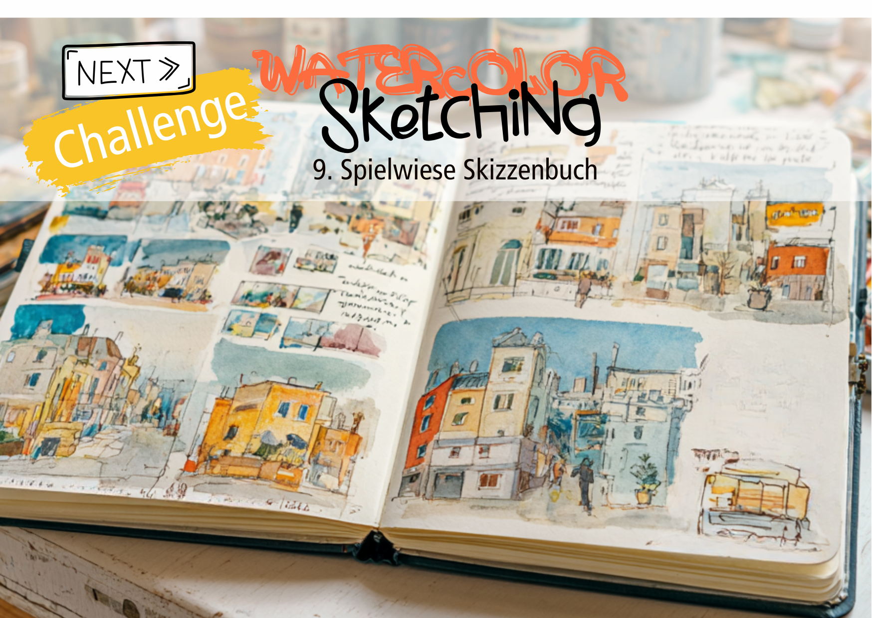 In dieser Challenge geht es darum, wie dein Skizzenbuch spannender, persönlicher und lebendiger wird. Nicht nur einzelne Bilder sind wichtig, sondern die ganze Seite und das Zusammenspiel der Elemente.